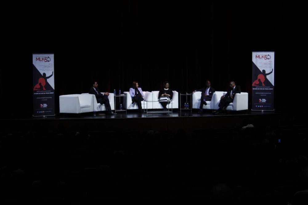 Panelists spoke on education and race in their panel, "The Promise of Education," at 2 p.m. on Monday, the second day of the MLK Symposium. From left to right are John B. King Jr., president and CEO of The Education Trust; Michele Norris, radio journalist and moderator; Karen Harrell, vice president of early childhood services at Porter-Leath; Dorsey E. Hopson II, Shelby County Schools superintendent, and Walter M. Kimbrough, author and president of Dillard University.