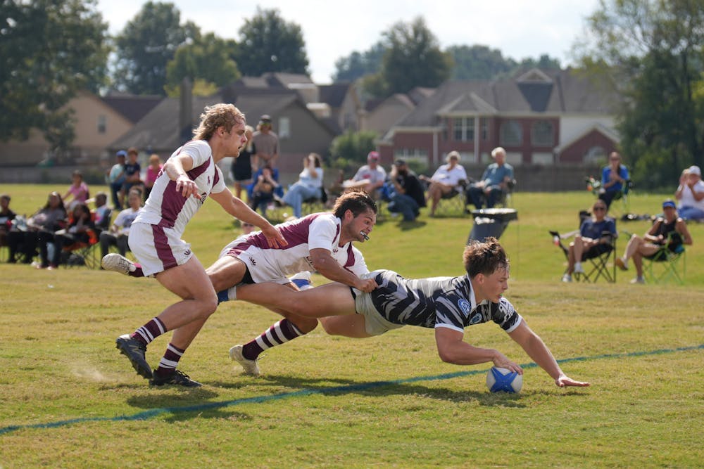 Memphis' outside center William Toy makes a diving effort in a contest earlier this season for Memphis club rugby.
