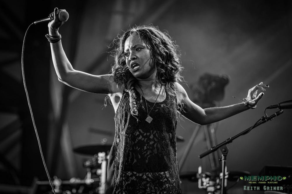 Tierinii Jackson, lead vocalist of Memphis-based rock band Southern Avenue, performs at the 2017 Mempho Music Festival at Shelby Farms park.