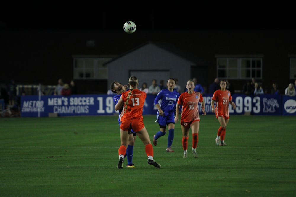 Memphis forward Ashley Henderson competes for a positioning to win a ball in the Tigers' 2-1 win over Illinois Saturday night at the Park Avenue Campus in the first round of the NCAA tournament.